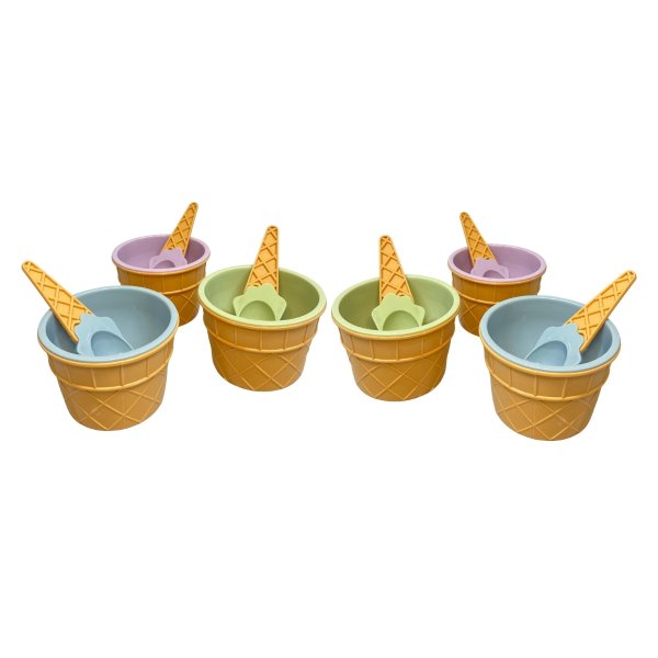 Tigela/ potinho de plástico no tema casquinha/ taça de sorvete, incluindo colher divertida. Utensílio lúdico para a hora do lanche e refeições. Ideal para sorvetes, sobremesas, frutas picadas, snacks, papinhas e outros alimentos!