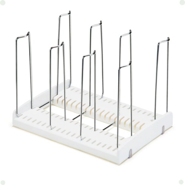Mantenha sua cozinha muito mais prática e funcional com o Organizador Multiuso Arthi. Projetado para otimizar o espaço dos armários, ele é perfeito para armazenar tampas de panelas, refratários, tábuas de corte, frigideiras, assadeiras e até livros, se preferir.