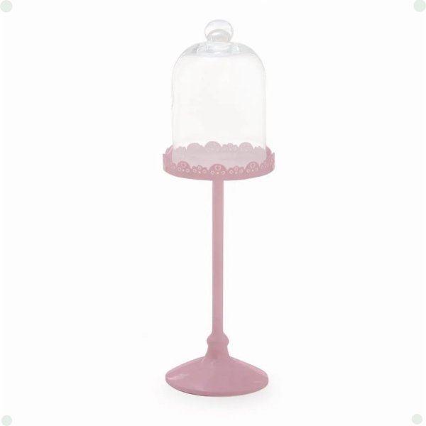 Solitário para cupcake com cúpula e borda de renda cor rosa, tamanho grande