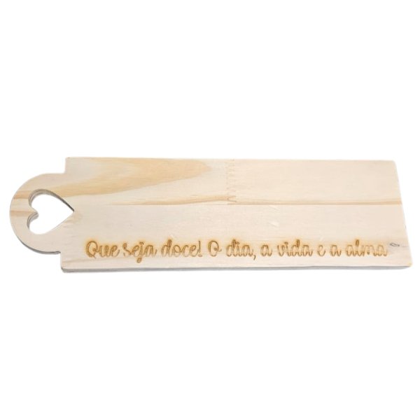 Tábua Decorativa Madeira com Coração Vazado 35x9cm Frase Que Seja Doce